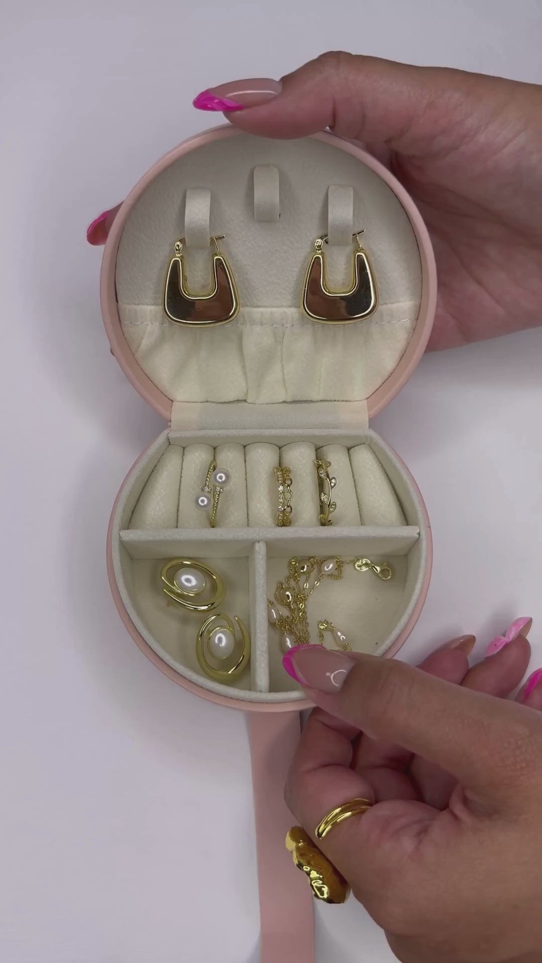The DKJ Mini Jewelry Case is a sleek solution for keeping your jewelry in place. It’s perfect for travel and designed in soft, luxe tones—blush pink and sage green. It features subtle branding, and a clean design that fits effortlessly in your handbag. It’s understated luxury for everyday elegance.